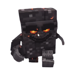 Appearance: Yellow block with red question-mark pupils, red top hat, wings, and :3 face.